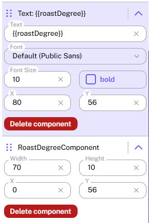 Example: {{ roastName }} will be replaced with the actual Roast Name in View